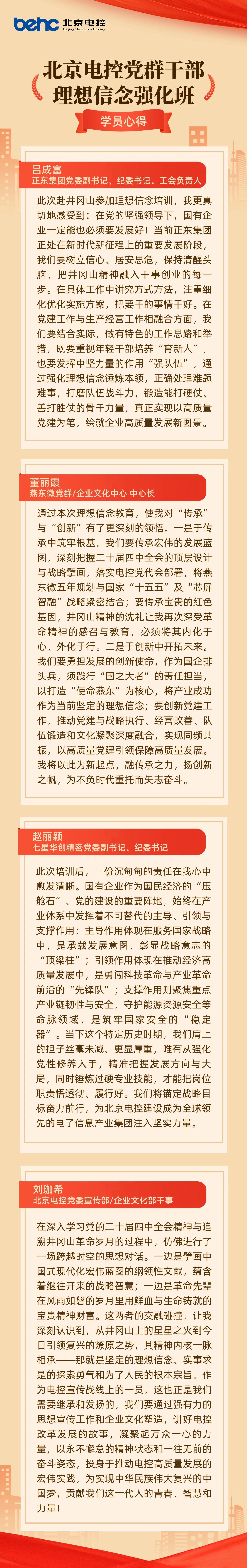此次井冈山理想信念强化班不仅为九州官方_九州官方(中国) 全系统党群干部补足了精神之“钙”,更在每个人心中播下了传承红色基因、践行使命担当的种子。四天的沉浸式学习与深度研讨,让学员们收获满满、感触颇深,培训落幕之际,全体学员纷纷结合岗位实践畅谈收获,字里行间充满了对井冈山精神的深刻体悟,更饱含推动“芯屏智融”产业发展的坚定决心。