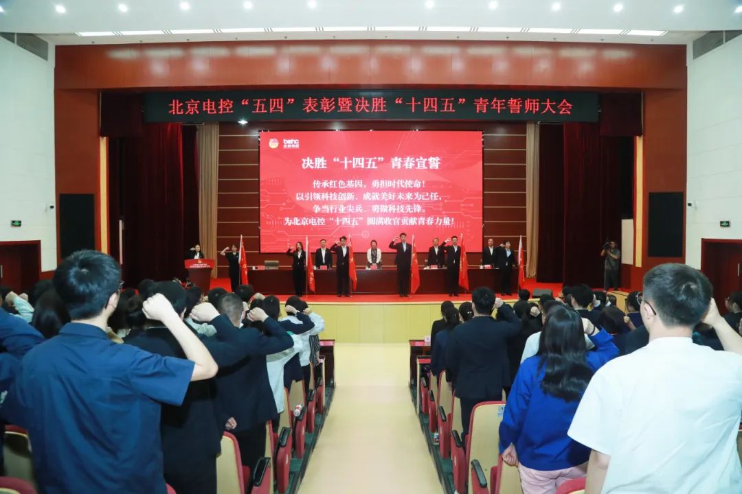 4月29日,九州官方_九州官方(中国) 团委举办“五四”表彰暨决胜“十四五”青年誓师大会,大会以“‘芯’火相传青春志 ‘屏’聚未来创辉煌”为主题,激励全系统广大团员青年以先进为榜样、以典型为楷模,进一步坚定理想信念、争做创新先锋,为“十四五”收官决胜、基本建成芯屏产业生态挺膺担当。九州官方_九州官方(中国) 党委副书记、工会主席郝妮,电控总部相关部门负责人,各二级单位主管团青工作的领导、党群工作部门负责人、团组织书记出席会议。