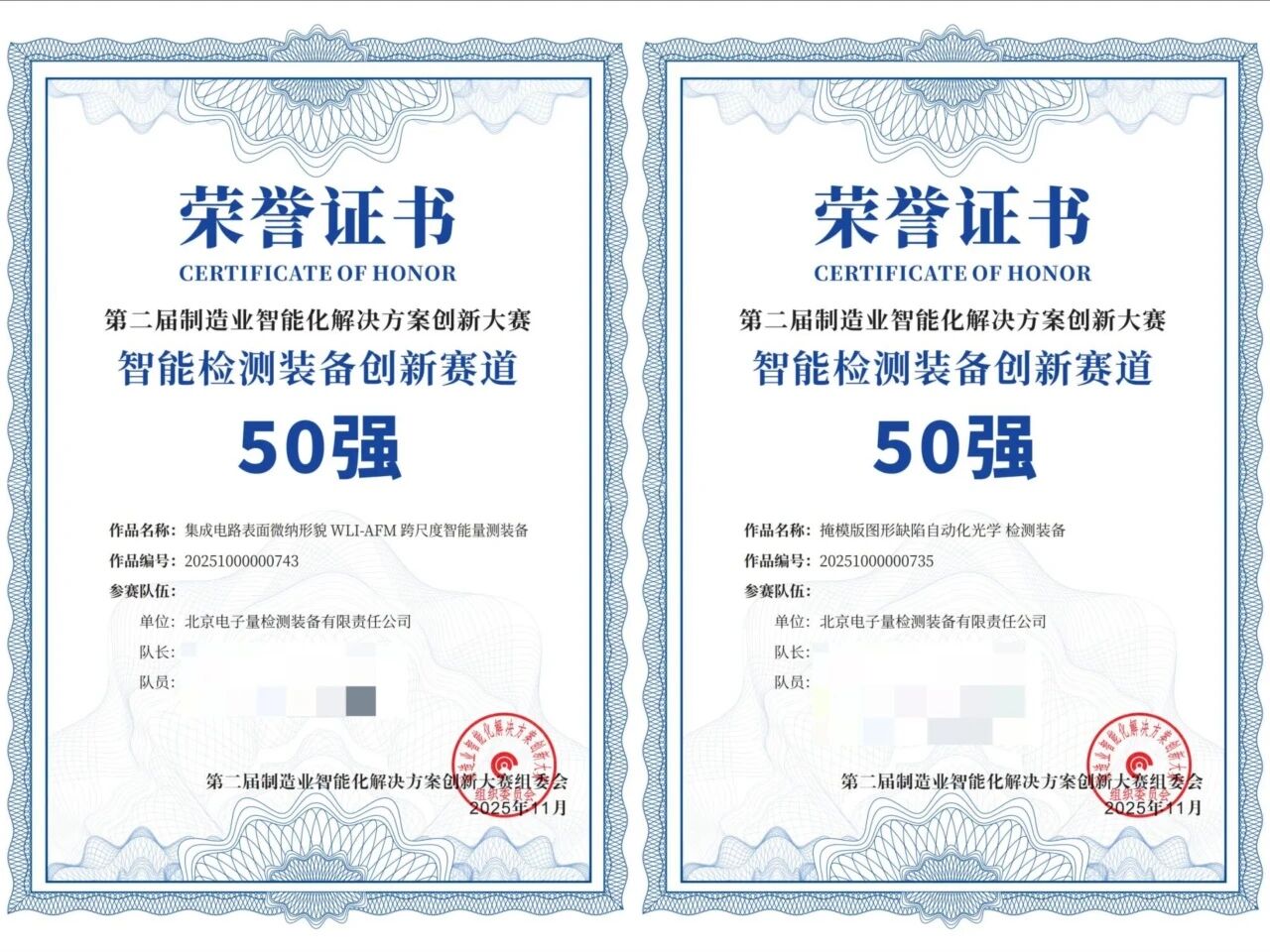 北电检测在半导体量检测领域收获佳绩。在中央企业智能制造协同创新平台等机构联合举办的“制造业智能化解决方案创新大赛”中,北电检测凭借“掩模版图形缺陷自动化光学检测装备”和“集成电路表面微纳形貌WLI-AFM跨尺度智能量测装备”两项产品,成功入围“智能检测装备创新”赛道50强。北电检测针对国家半导体设备行业最薄弱环节之一的高端量检测设备及半导体设备核心零部加工制造件环节,充分发挥现有技术积累优势,突破量检测领域技术短板。此次获奖,充分表明北电检测产品在技术先进性上获得了行业的高度认可。
