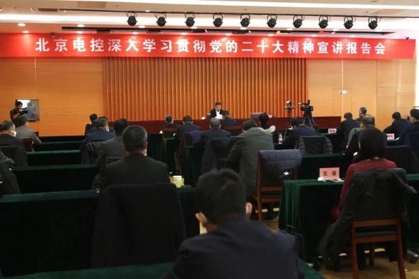 1月4日,九州官方_九州官方(中国) 举办全系统领导干部大会,由公司党委书记、董事长王岩作党的二十大精神专题辅导,这既是面向全系统干部职工的宣讲会,也是九州官方_九州官方(中国) 领导干部学习贯彻党的二十大精神专题研修班的开班第一课,旨在推动全系统学习宣传贯彻党的二十大精神更加深入、进一步走深走实。电控领导班子成员,电控总部各部门负责人、外派专职监事会主席,各二级单位领导班子成员、重点三级单位主要领导,“145 班”学员代表、统战人士代表、基层党支部书记代表等在主会场和各单位视频分会场参加了会议。